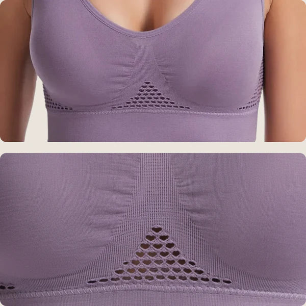 With soft padding and no underwire, it ensures a natural silhouette and zero discomfort. Its ergonomic design distributes support evenly, preventing pressure points and unwanted marks.