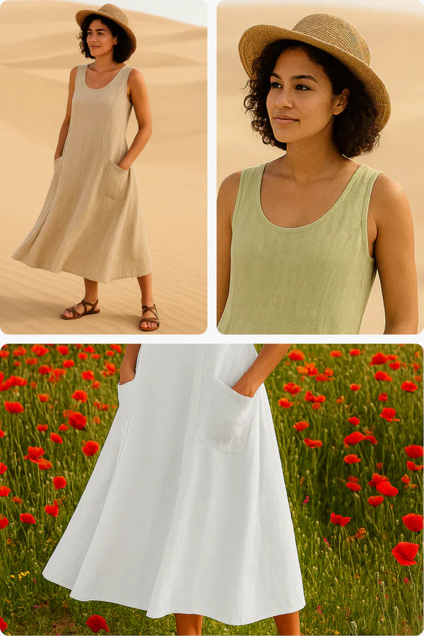 Crafted from linen and cotton, it ensures lightness and freshness – perfect for sunny days without sacrificing elegance.