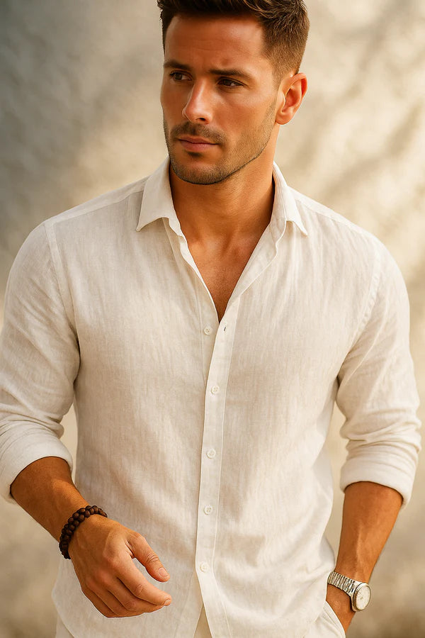 The Monarch Shirt blends laid-back ease with sophistication, with a cotton-linen fabric that ensures comfort and style for any occasion.