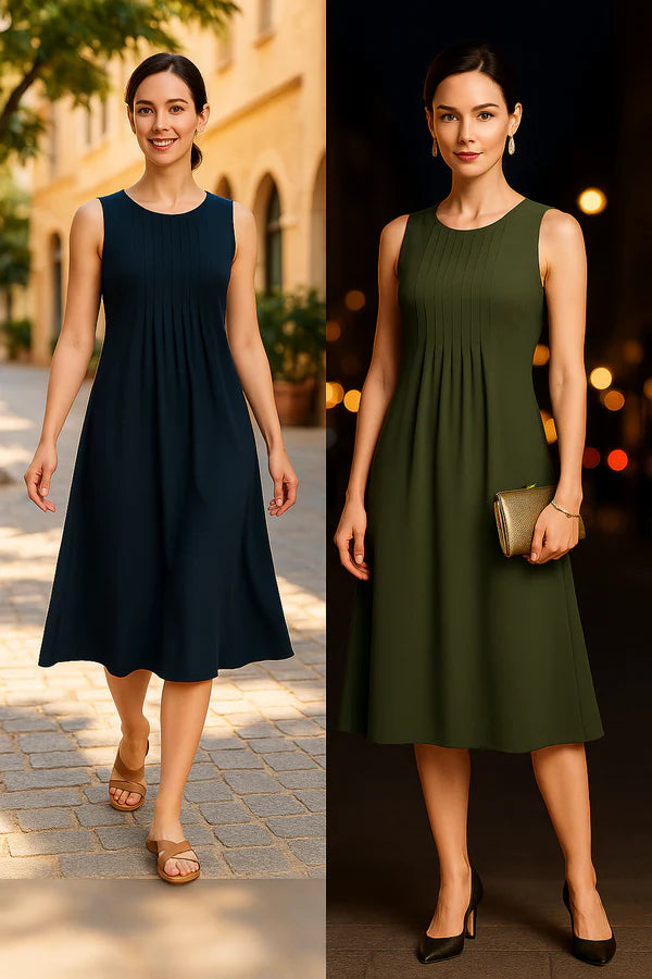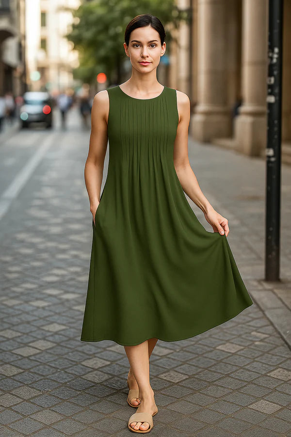 Monarch Marije-Louise Midi Dress – Casual Elegance with Pleats and Pockets