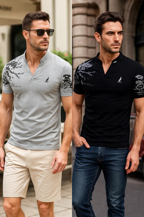 With its discreet shoulder print and short sleeves, it blends classic style with modernity in a single piece. Ideal for anyone seeking a laid-back look without losing elegance.