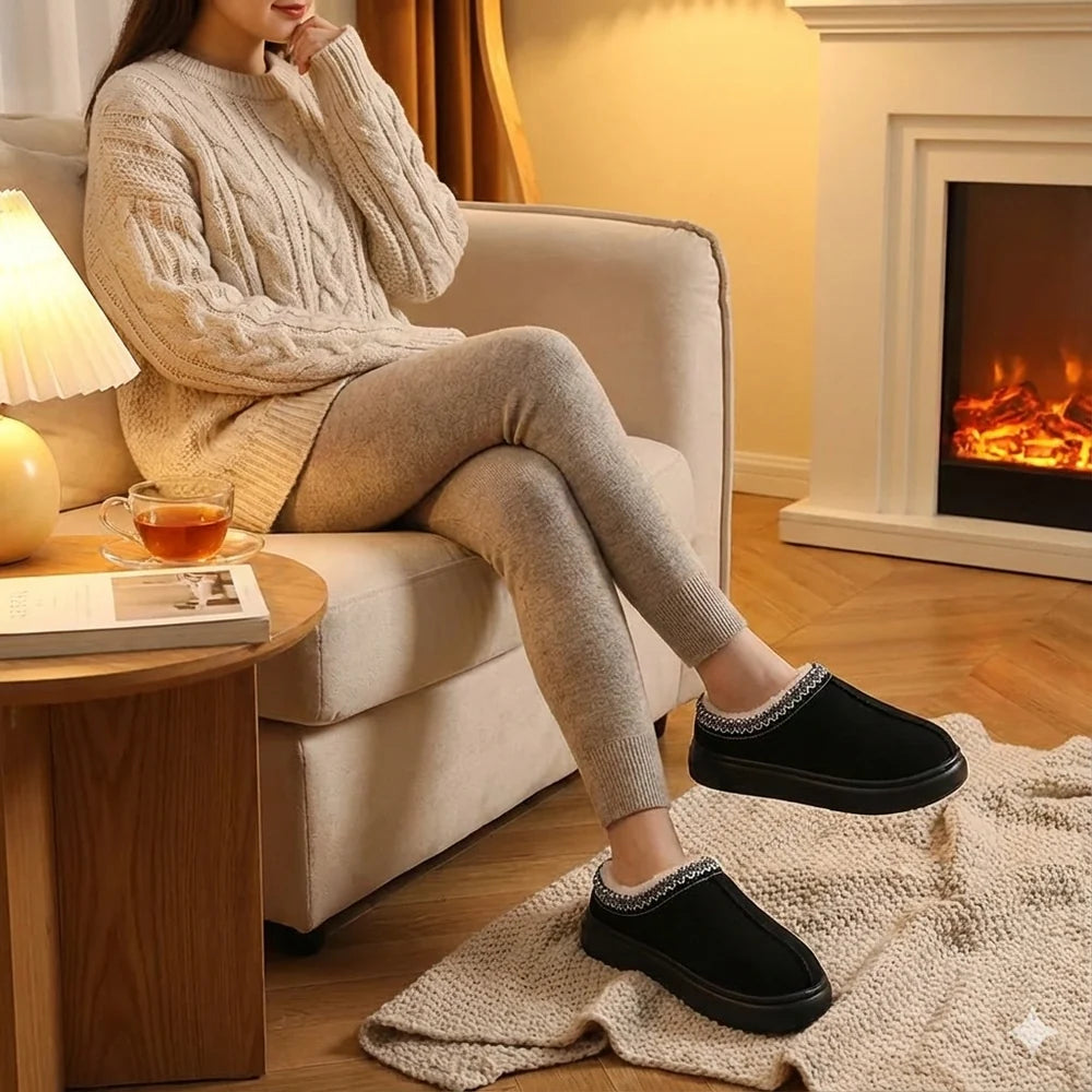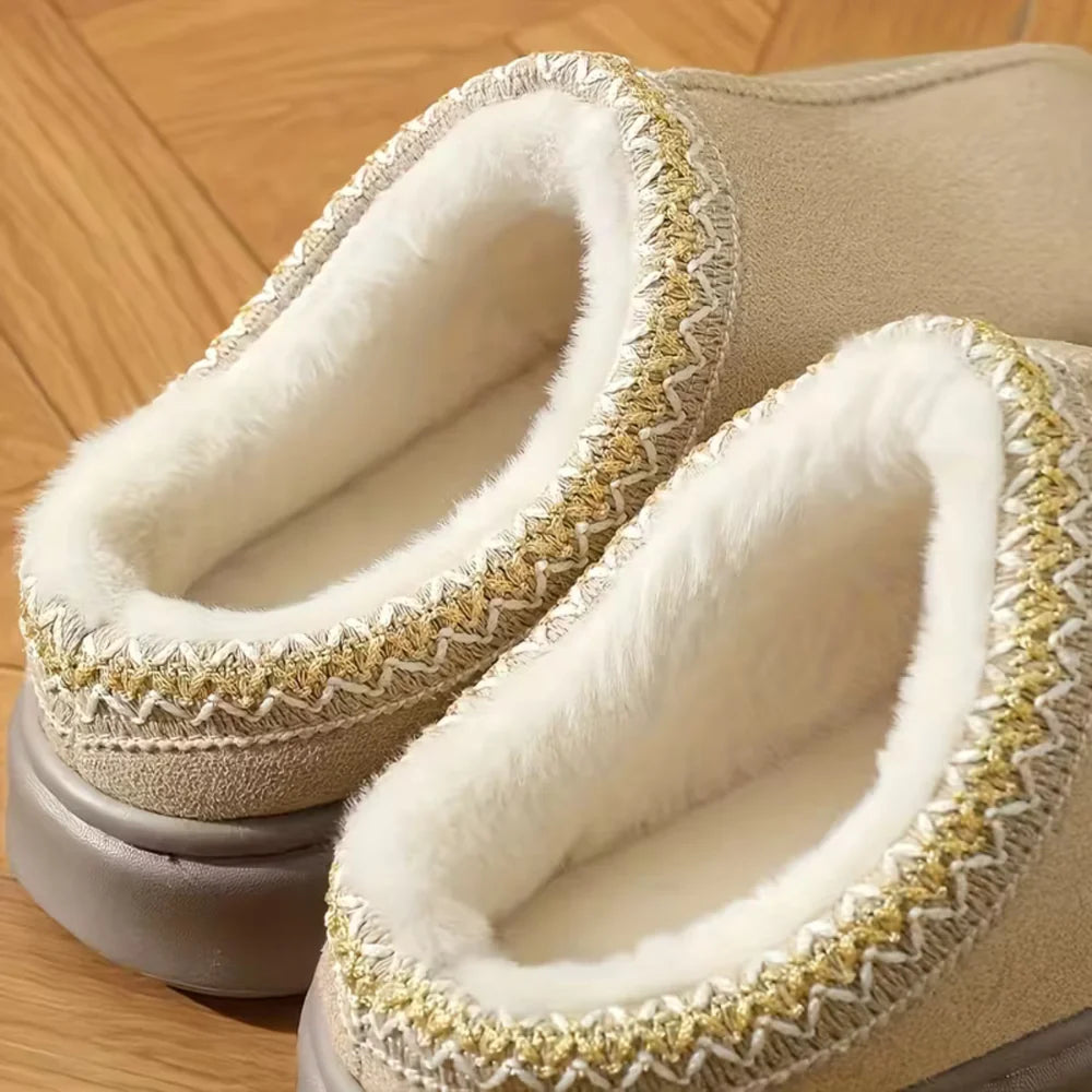 Decorative stitching strengthens the shoe’s structure while adding an elegant winter touch. Its casual silhouette makes it easy to pair with indoor outfits as well as relaxed outdoor looks.