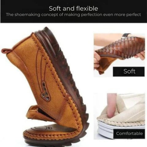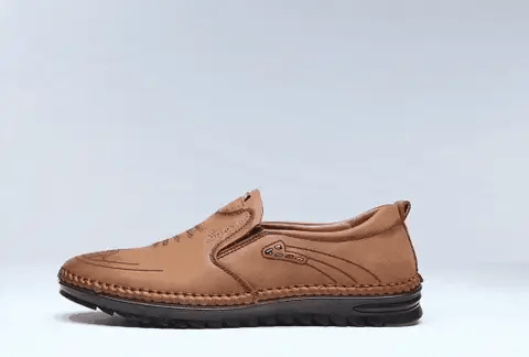 These leather loafers have a refined and timeless look, perfect for men who are looking for a style that is both smart and casual. The light brown color emphasizes the quality of genuine leather, while subtle details on the sides add a touch of character. A perfect choice for an effortlessly refined look.