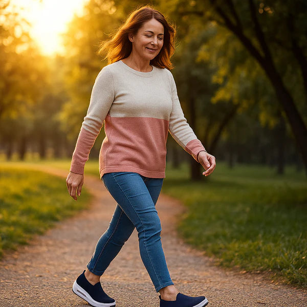 The slip-on design makes them quick to put on and take off, while the rounded shape provides extra toe room to prevent discomfort on long walks.